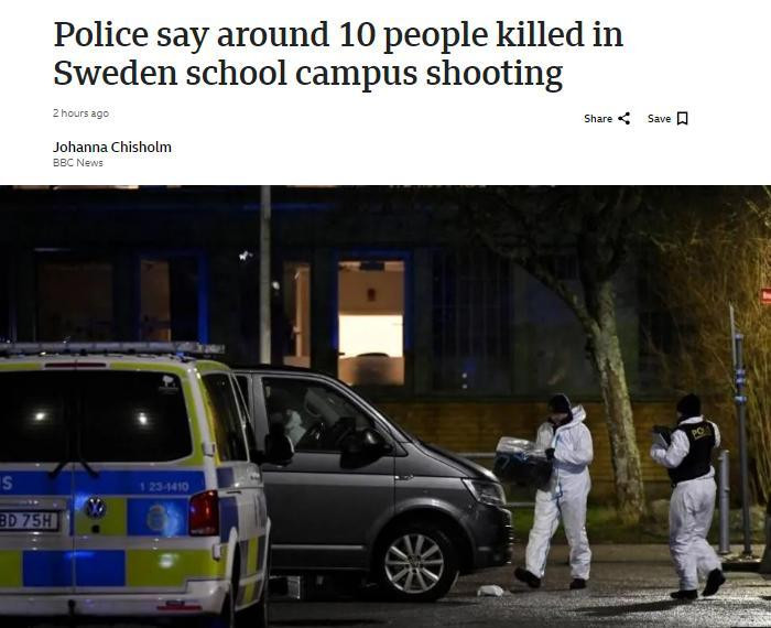 瑞典校园枪击案已造成约10人死亡 瑞典首相发声!